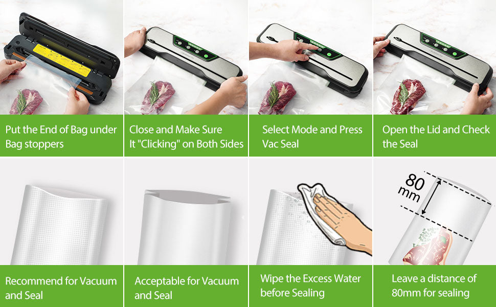 - 【Compact Design & Easy to Clean】15.03"x4.00"x2.44" compact design saves countertop space; 11.8" maximum sealing length allows you to seal multiple bags in one sealing time; Stainless steel and ABS material, easier for you to clean.