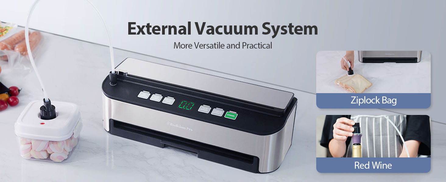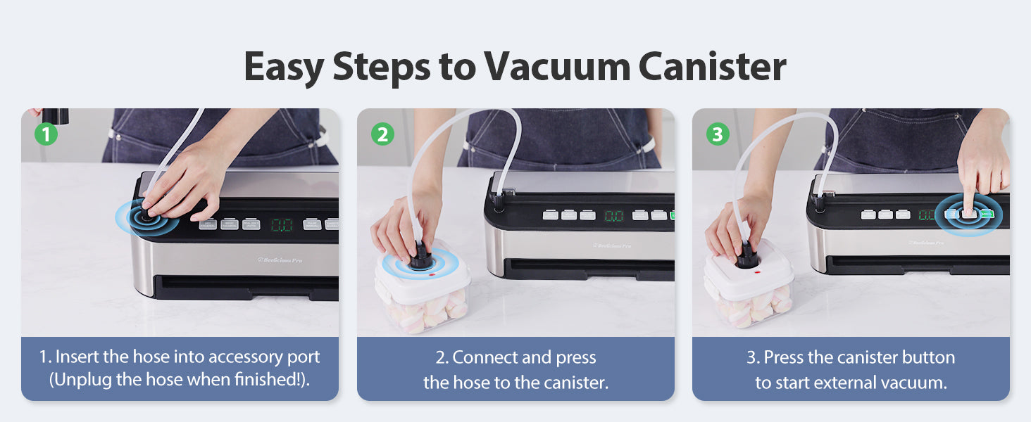 - 【8 Fully Automatic Functions In One】VAC&SEAL: One-Press Easy Operation. DRY & MOIST Mode - Maximize the freshness of different ingredients. SEAL ONLY - Seal food fully automatically. PULSE - Control the vacuum pressure manually. CANISTER & MARINATE - For jars, canisters, wine preservation and marinate. CANCEL- Stop the current operation at any time.